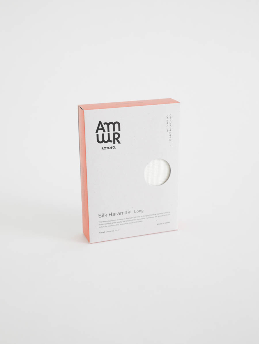 AmwR(アムワー)は、「冷え」に向き合い、温もりをまとうために生まれた、ROTOTO発のウェルネスレーベルです。靴下づくりで培った素材選びと編みの技術を活かし、筒編みでやさしく身体を包み込むアイテムを展開。人の肌と同じたんぱく質で構成されるシルクを用い、吸湿・放湿性に優れた快適さと、洗濯可能な扱いやすさを両立しています。