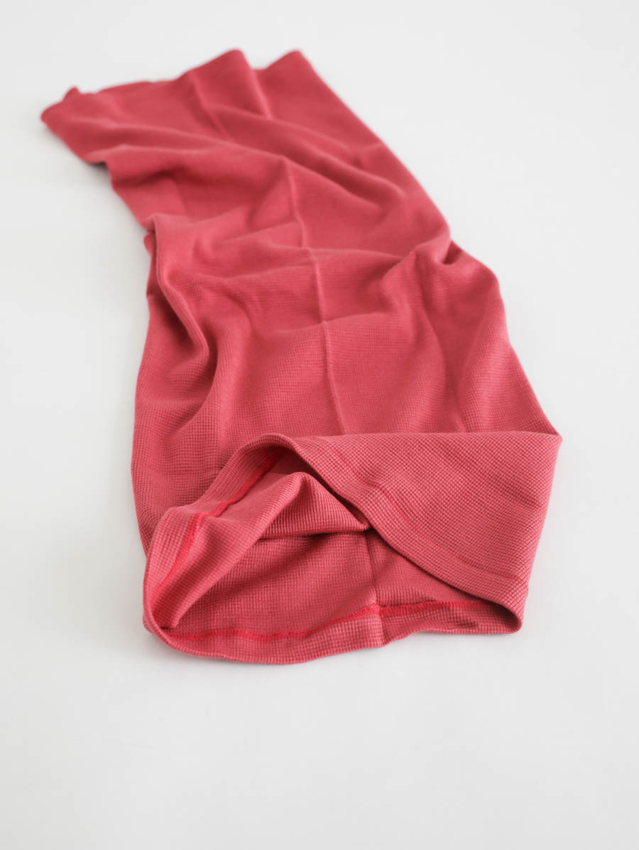 ロング丈は、そのまま着用すると脇下くらいまでカバーできるくらいの長さ。ペチコートとして使ったり、折り返して使うとシングルより保温性があります。また、枕カバーとしてお使いいただくのも贅沢で気持ちいいです。