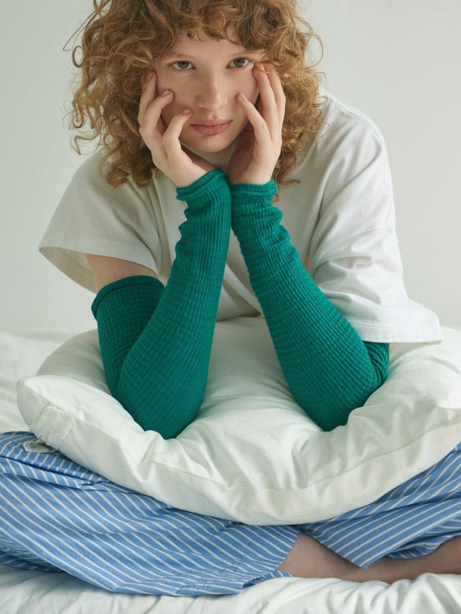足首やふくらはぎを温めるレッグウォーマーとして、袖口からの冷気を防ぐアームウォーマーとして。家の中ではもちろん、外出時やオフィスでもさりげなく取り入れていただけます。