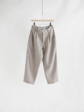 ウエストの後ろにゴムの通ったイージーパンツ。フロントには2タックが入り、ゆったりと深い股上。