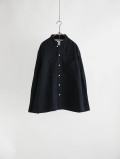 1番上はループボタン、抜け感のある首周りのゆったりシャツ。ゆとりのある身幅、肩幅で楽に着れて、着丈は長すぎずバランスの良いリラックスシルエットです。中にタートルネックを着て、ループボタンを外して着ても雰囲気良いです。