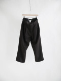 ウエストに2プリーツが入ったゆとりのある腰回りから、裾にかけて流れるようなドレープが生まれるライン。股上深めで余裕のあるゆったりとした心地よさがありつつも、落ち感のある上品なシルエットです。