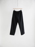 ウエストはゴムと紐の通ったイージー仕様で楽な穿き心地。若干のテーパードがかかった、ゆったりきれいなシルエットです。裾にはスピンドルが付いていて、絞るとよりスポーツライクな雰囲気になります。