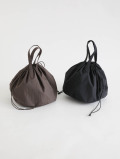 縁に通った紐をギュッと絞って巾着として、そのままでハンドバッグとしても使えるデザイン。内側には一つポケットの付いた仕様。マチがあるため見た目以上の収納力があります。光沢が強すぎず表情のあるナイロンなので洋服にも合わせやすく、毎日気軽にお使い頂けるアイテムです。