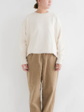 着れるシーズンも長い、目の詰まったコットン裏毛を使用。裏側の毛足は短くドライタッチ。程よく厚みのある生地は丈夫で柔らかく、日常着としてたくさんご愛用いただけます。