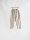 ウエストにゴムと紐の通った、楽な穿き心地のイージーパンツ。 ゆったりとしていて、裾にかけてテーパードのかかったきれいなシルエットです。 シンプルで気楽に穿けるので、ニットにカットソー、シャツとトップスも合わせやすいです。