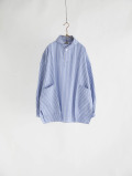 綿麻ストライプ定番プルオーバービックシャツ(ブルー)