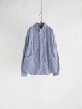 定番プルオーバー型 前開き比翼ギンガムシャツ(ブルー)