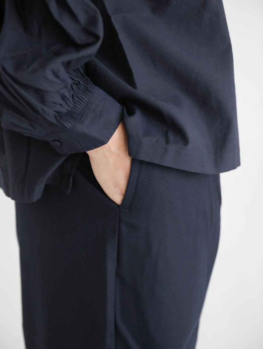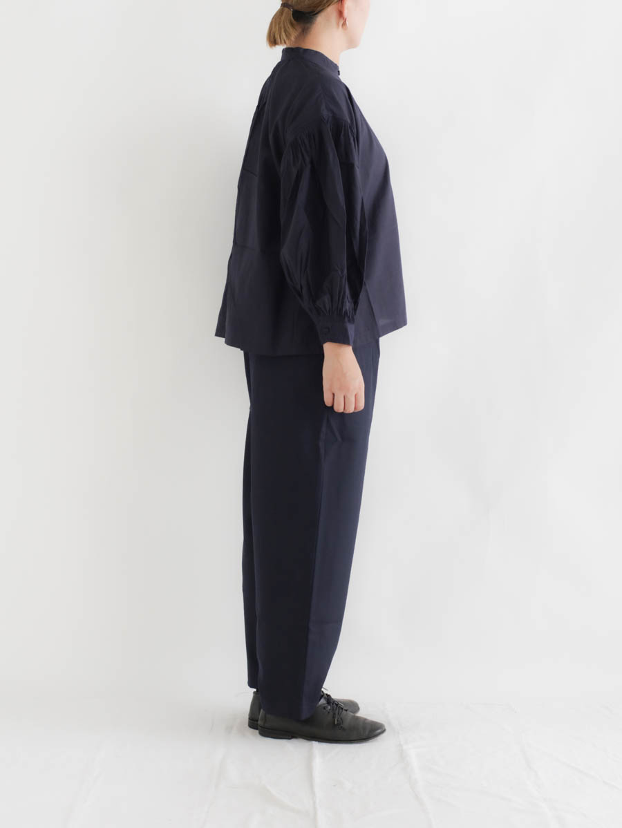 ウールサージ2タックテーパードパンツ(ネイビー)