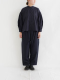 ウエストにはタックが入り、腰まわりはほどよくゆったりとした履き心地。ヒップや太ももまわりも安心感があり、テーパードのかかったラインで見た目はすっきりと。リラックス感と上品さのあるきれいなシルエットです。