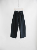 ウエストにはゴムと紐の通ったイージーパンツ。フロントにはタックが入り、外脇を少しカーブさせた曲線的なライン。太さはありつつも、落ち感により収まりの良いきれいなワイドシルエットでご着用いただけます。