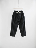 ウエストはゴムの通ったイージーパンツ。タックの入ったゆとりのある腰回りから、テーパードのかかったきれいなライン。生地の落ち感を活かした、品のある大人のシルエットです。