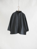 身幅が広く肩の縫い目も落とした、程よくゆとりのあるシルエット。前開きですが、ボタンを表に出さない比翼仕様ですっきりと。少し立ち上がったネックラインがきれいで、ラフになりすぎない大人な表情です。