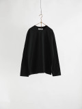 強撚糸を使用したハリとコシのある程よく肉厚のコットン天竺で、ルーズフィットなので1枚でご着用いただけます。肌離れの良い生地は、肌触り心地よくしっかりとタフ。度詰めで編み上げているので透けにくいです。