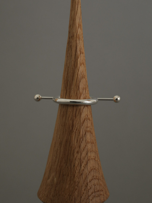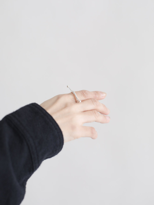 シンプルなリングにシルバーのスティックを突き通したユニークなデザインは、独特の存在感を放ち指先の華やかなアクセントとしておすすめです。