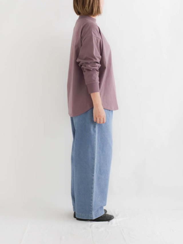 体に心地よく馴染み、程よいドレープ感が大人好み。スタイリングにも取り入れやすく、1枚でもインナーにも幅広く重宝します。