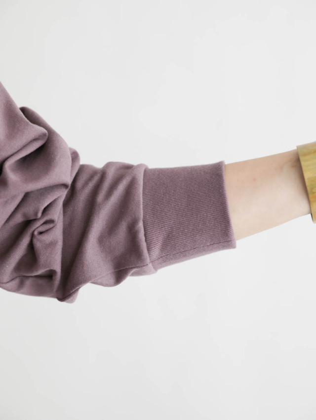 少しだけ首が立ち上がったミドルネック。リブ編みで優しくフィットし、きれいなネックラインを作ります。アウターと重ね着した時も、さり気なく存在感を主張します。