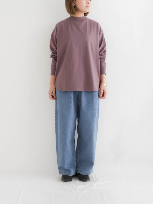 空紡天竺ミドルネックラウンド長袖Tシャツ(アース)