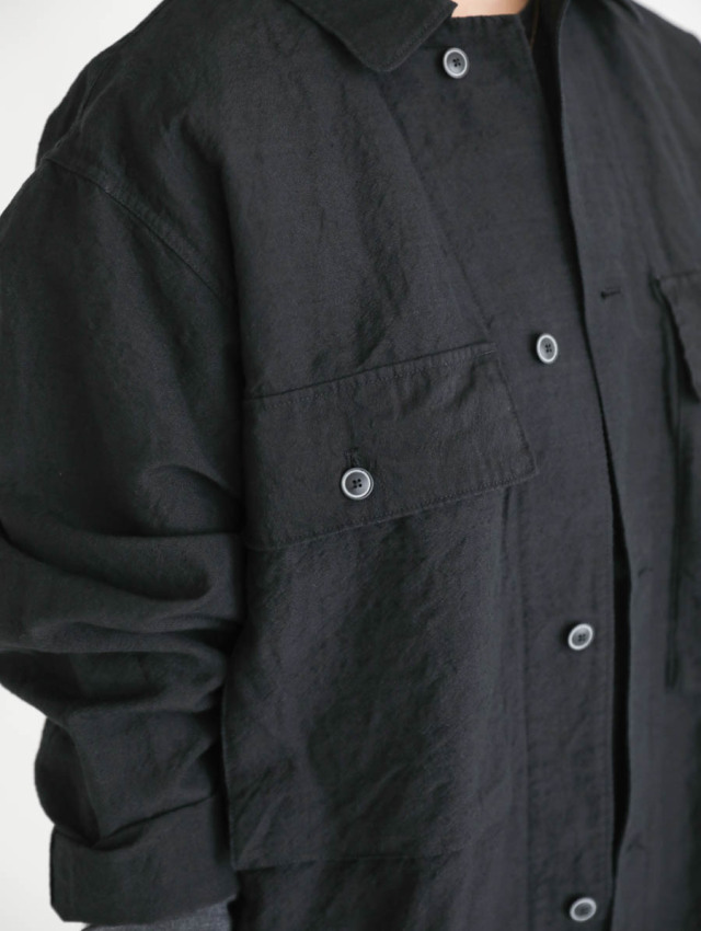 ウールリネン縮絨シャツジャケット(ブラック)