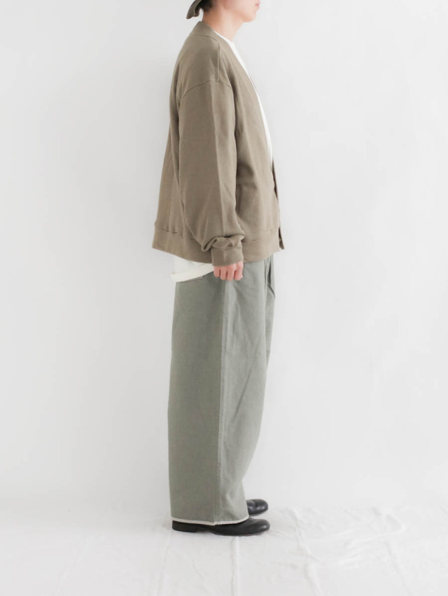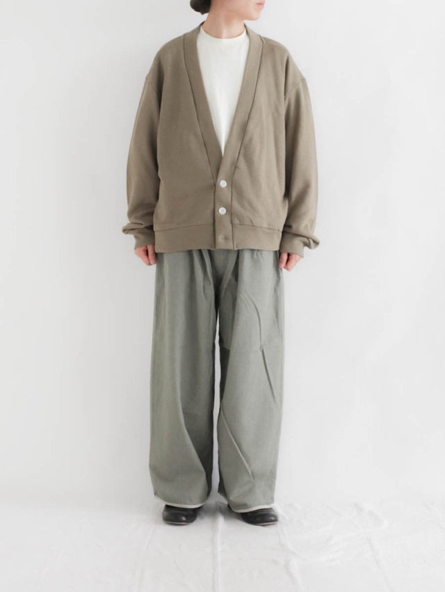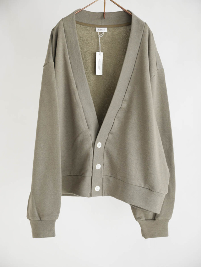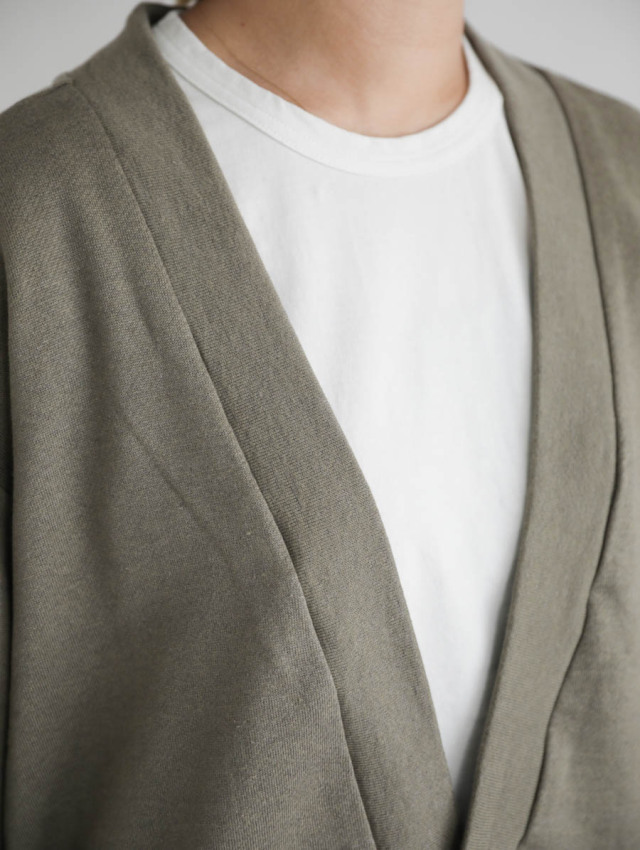リネンコットン裏毛カーディガン(カーキオリーブ)
