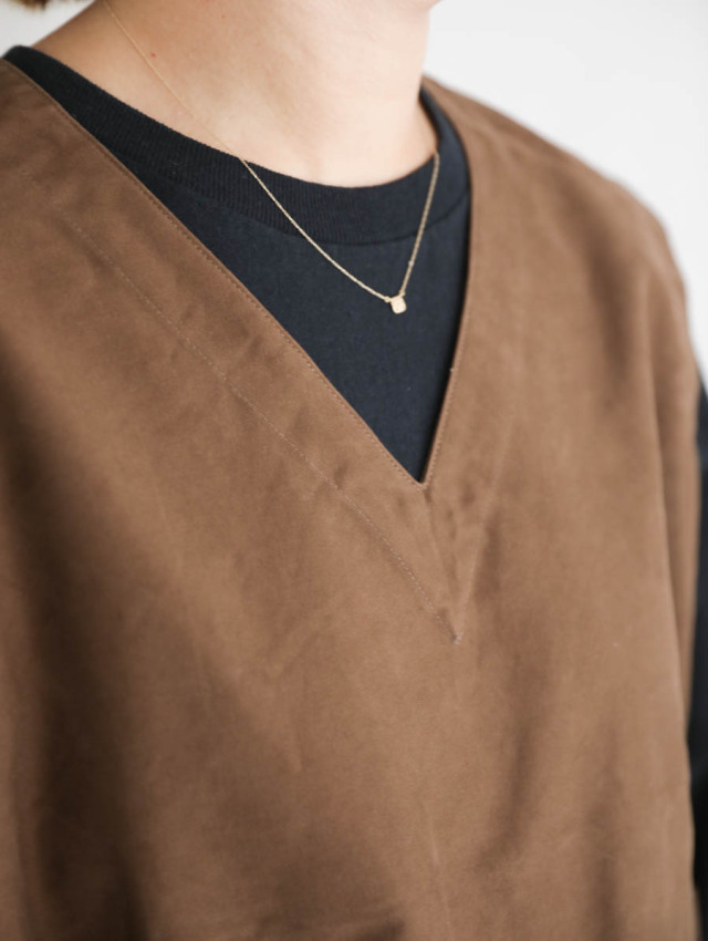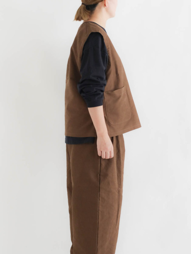 ゆったりとしたサイズ感で気楽に着れるプルオーバーベスト。