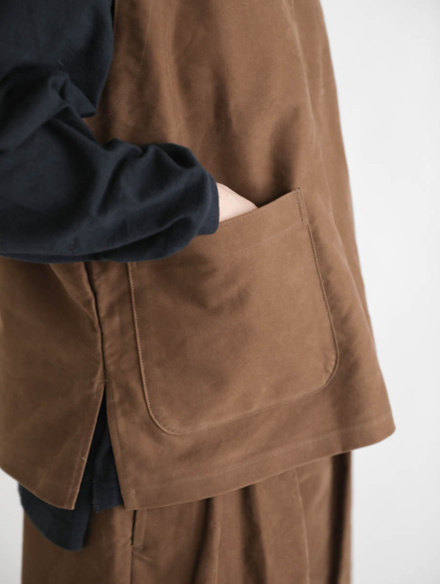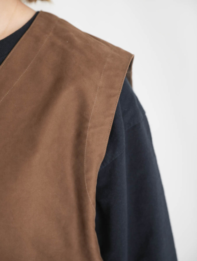 秋冬に着るカットソーやシャツに重ねたい、シンプルで雰囲気の良いモールスキンベスト。