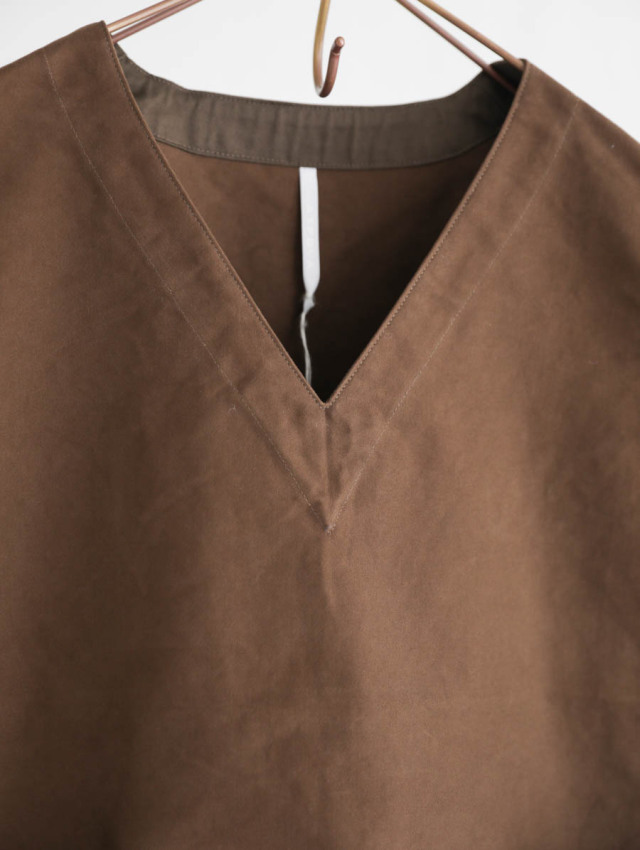 きれいなVネックが襟周りをきれいに見せてくれるので、ハイネックやフリルカラーシャツと合わせていただくのもいいですね。