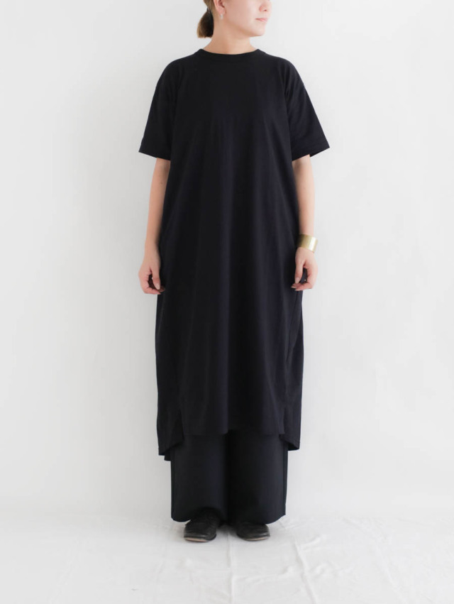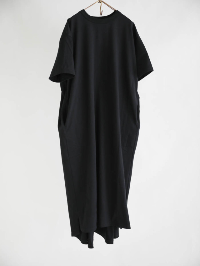 40天竺バックフレアーワンピース(ブラック)