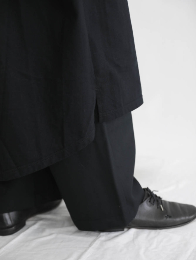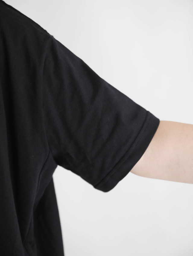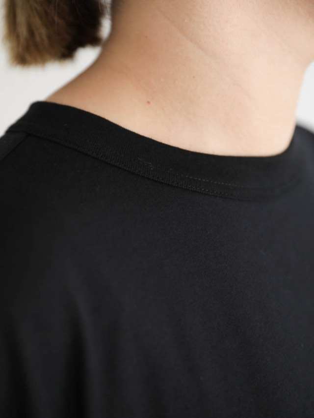 程良い厚みで膨らみのあるコットン天竺。しっかりとした生地ですが、柔らかい肌触りが心地良い素材です。カジュアルになり過ぎず上品な印象で着ていただけます。
