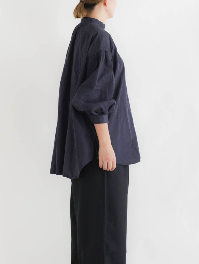 ゆったりとしていて楽に可愛らしくご着用頂けるプルオーバー。ヨーロッパのヴィンテージチュニックのディテールを取り入れたデザインです。ゆったりとしたサイズ感で着心地良く、首裏、袖付け、袖口に施されたギャザーが可愛らしいシルエットを作ります。
