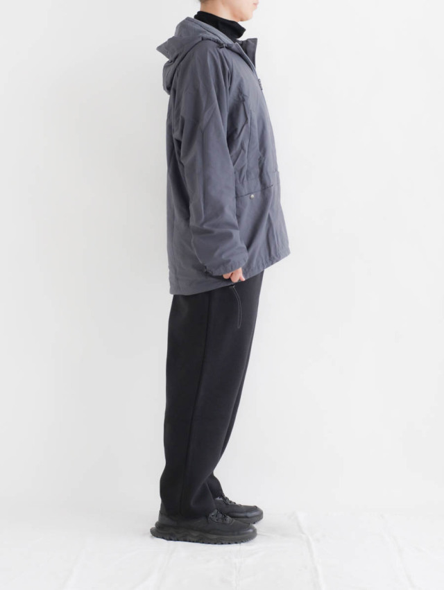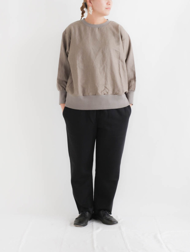 スウェットパンツでもラフになりすぎず、ウエストはイージー仕様で楽に過ごせます。