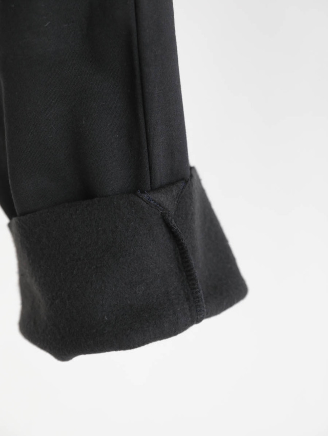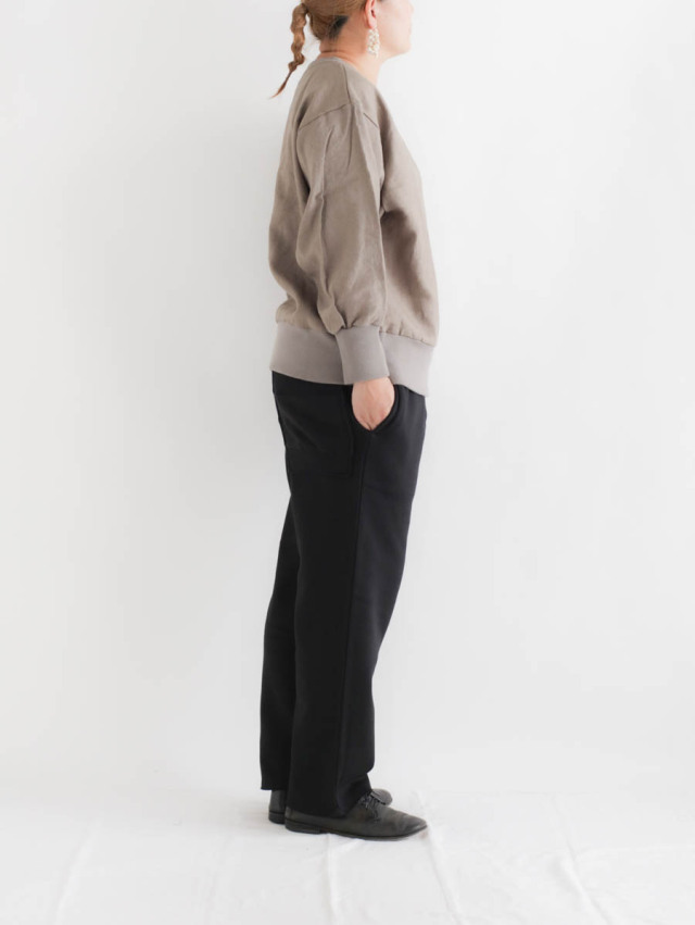表面がキレイ見えなコットンポリスウェット。軽量で程よい弾力があり、柔らかな穿き心地です。ふんわりとした裏起毛なので、秋冬に気持ちよくご着用いただけます。