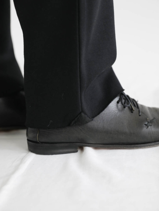 足元の収まりもよくローファーなどの革靴にも合わせていただけるスウェットパンツ。
