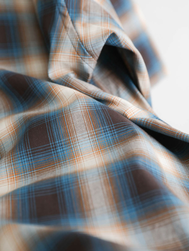 上質で優しいタッチのコットン素材。色が重なり合った、奥行きのある表情のチェックが素敵です。