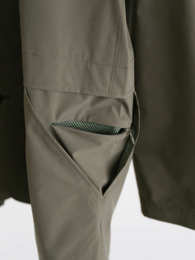 シンプルな見た目ですが、前後左右に4つとジップ付きのセキュリティポケットが付き、実はポケットが6つ。アウトドアの要素が少し加わるだけで、ジャケットの着やすさがグンと広がりますね。
