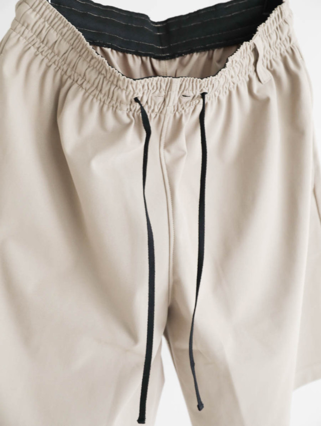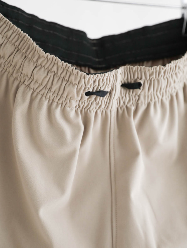 サラッとしていて吸水速乾性のある高機能ポリエステル。きれいな表面感でラフになりすぎずきれいめな見え方でご着用いただけます。肌離れよくストレッチが効いているので、穿き心地は快適。
