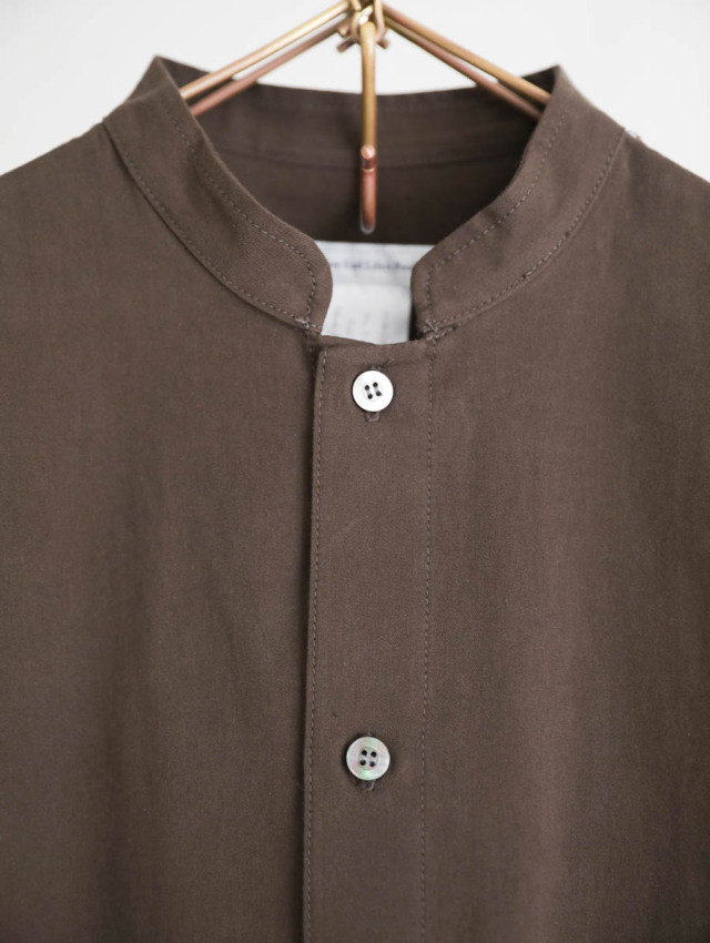 マオカラーのような立ち衿はレギュラーカラーやスタンドカラーに重ねてもバランスが良いですよ。