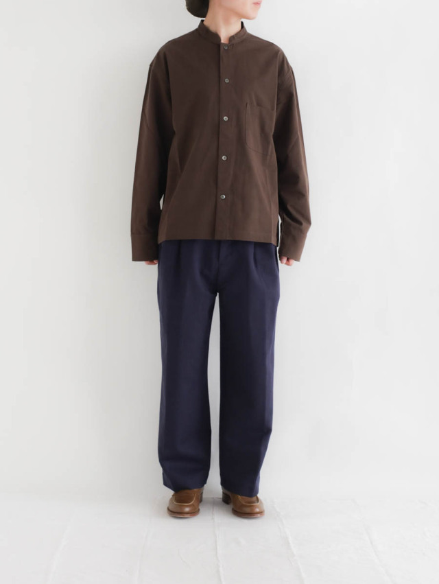 程よい厚みでサラリと肌触り良く、少し厚手のシャツ感覚で。秋口の羽織としても十分に活躍してくれます。