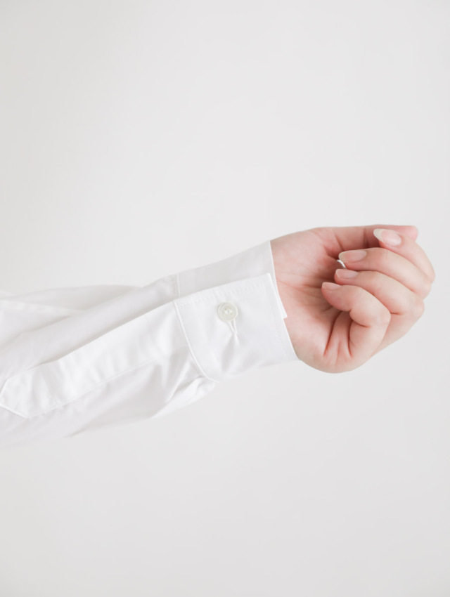 ふわりと余裕のあるシルエットが特徴の、シンプルできれいなシャツです。