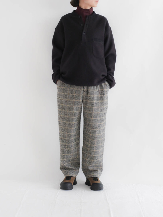 首元やポケット口のリブがポイントになるゆったりプルオーバー。身幅、肩幅が広く、シャツやカットソーとの重ね着も気軽に出来ます。軽くて温かいので着用時のストレスも少なく、寒い季節のニットやスウェット代わりに活躍してくれます。