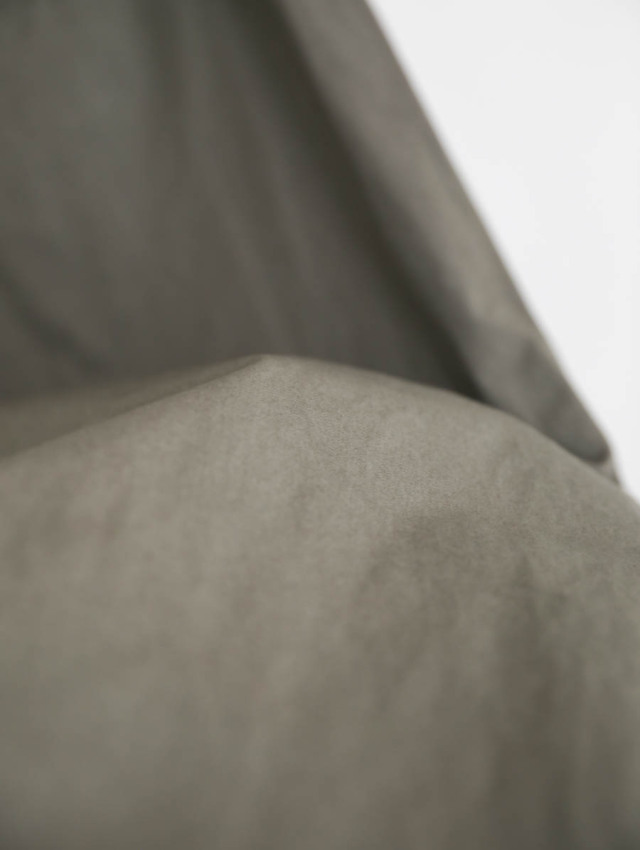 毛羽の少ないコンパクトヤーンを使用した高密度コットンギャバジン。しなやかでドライな心地よいタッチ、マットで表面にムラ感のあるペーパーライクな表情です。程よい厚みでさらりとした生地は長いシーズン着れて、気持ちの良い履き心地です。