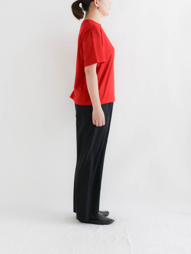 Tシャツですが、見た目がラフになりすぎず大人な見え方に。