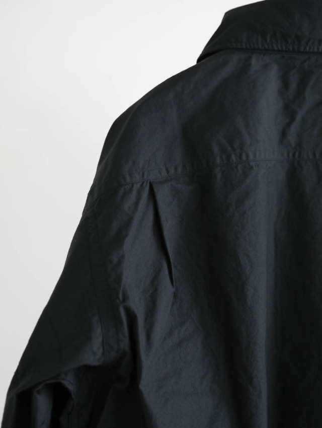 丸衿プルオーバー型 前開き比翼シャツ(ブラック)