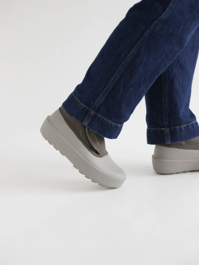 能性を追求し余計なものを削ぎ落としたデザインは、ミニマルで都会的な雰囲気もあり、ぽてっとしたフォルムに愛らしさを感じます。様々なスタイルに馴染み、程よく抜け感を出してくれる日常靴です。