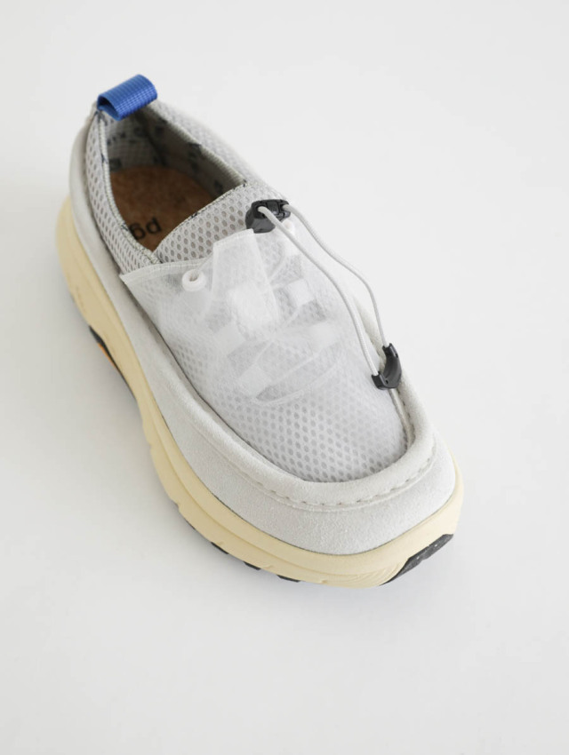 歴史あるモックトゥブーツを彷彿とさせる、U字のトゥに沿ったステッチワークや、ほどよく丸みのあるフォルム。メッシュのシュラウドを重ねることで、機能とデザインが自然に重なり合う構造になっています。