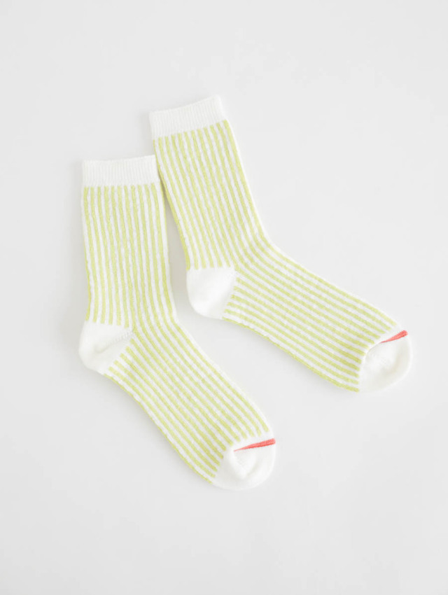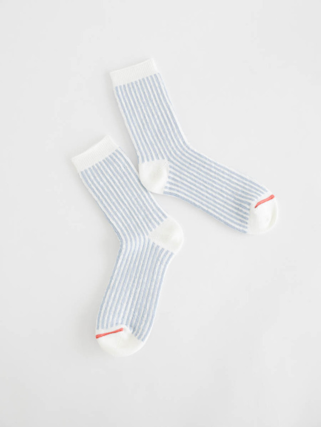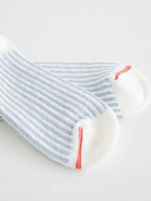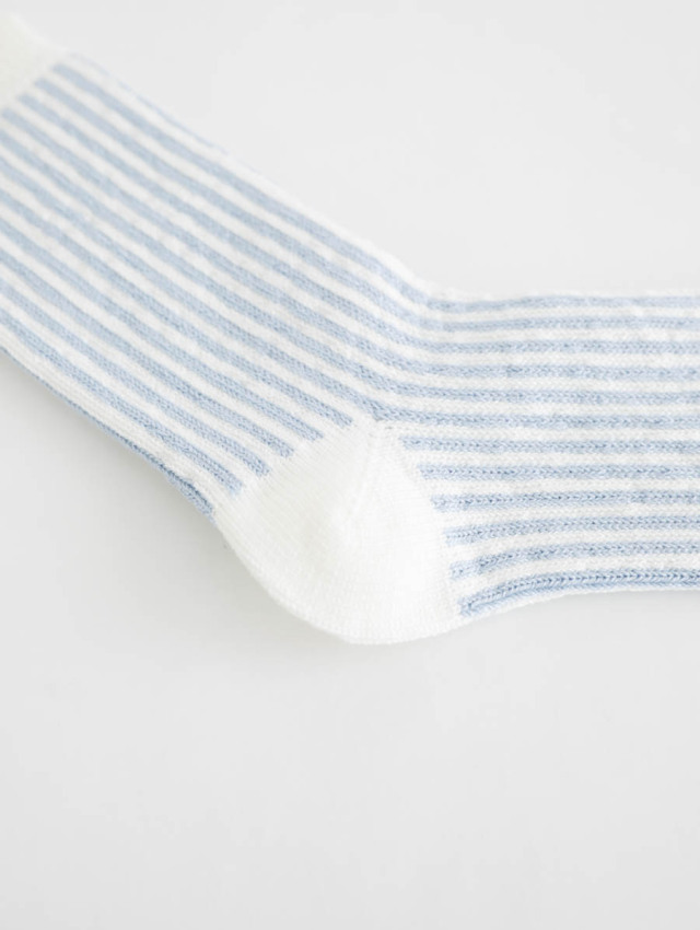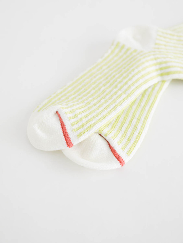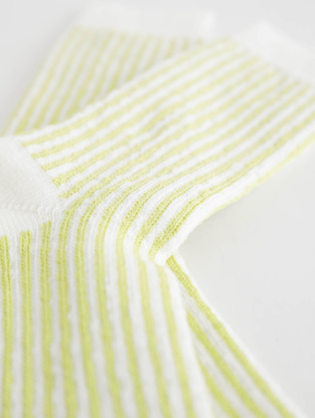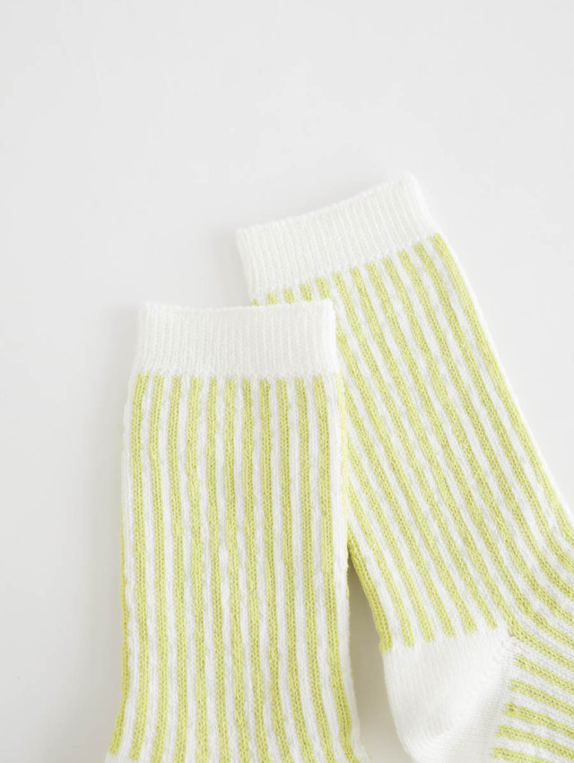 春夏らしい軽やかさを足元に添える、ストライプ柄のソックスです。