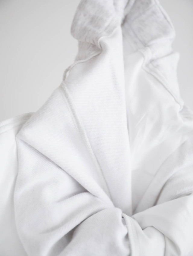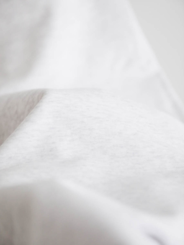 しなやかで厚手のコットンフレンチテリー。杢感のある柔らかな表情で、少しハリがあるのでラフになりすぎないスウェットです。裏側は毛足が短くさらっとドライタッチで心地よいです。