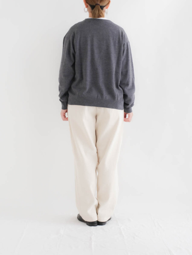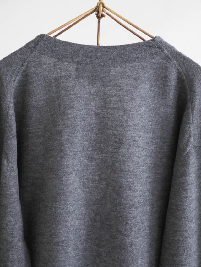 ウールとシルクの甘撚りの糸を使って編んだ、薄手で軽やかに着れるニット。